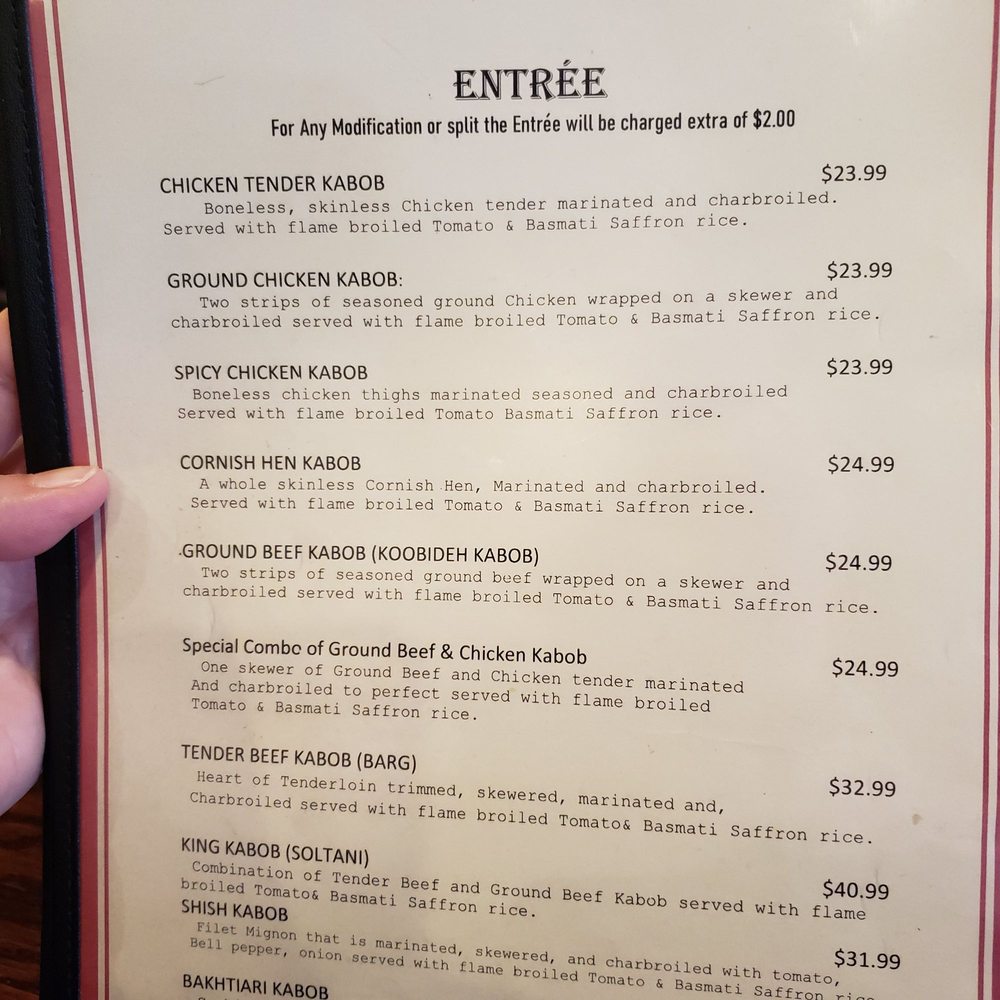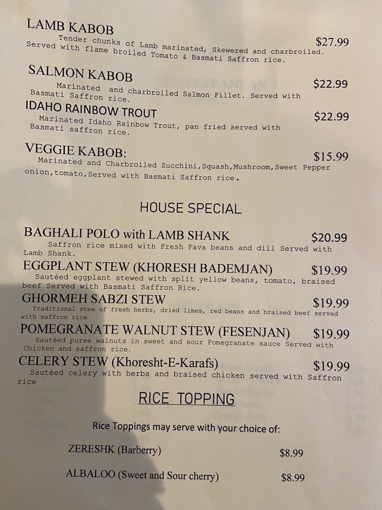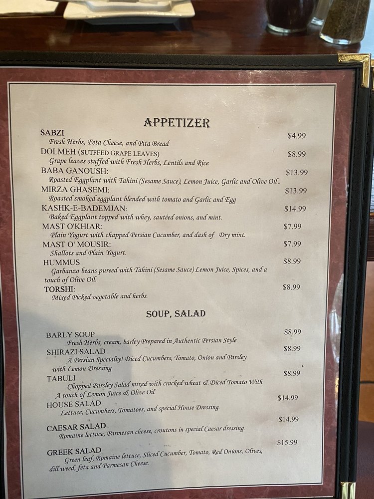 Shiraz Mediterranean Grill presents a delightful fusion of Mediterranean and Persian/Iranian cuisine in a sophisticated and cozy setting. Located in Dallas, TX, this restaurant offers a range of amenities, including reservations, delivery, and vegan-friendly options. The menu boasts a variety of vegetarian choices, all prepared with fresh ingredients and exquisite spices. Customers rave about the exceptional service, warm ambiance, and perfectly cooked dishes, such as the soltani, kebabs, and gormeh sabzi. Whether you're a fan of Mediterranean flavors or new to Persian cuisine, Shiraz Mediterranean Grill guarantees a memorable dining experience. With a full bar, outdoor seating, and private dining options, this establishment is perfect for celebrations or casual gatherings. Don't miss the chance to savor the best Persian cuisine in town at Shiraz Mediterranean Grill.