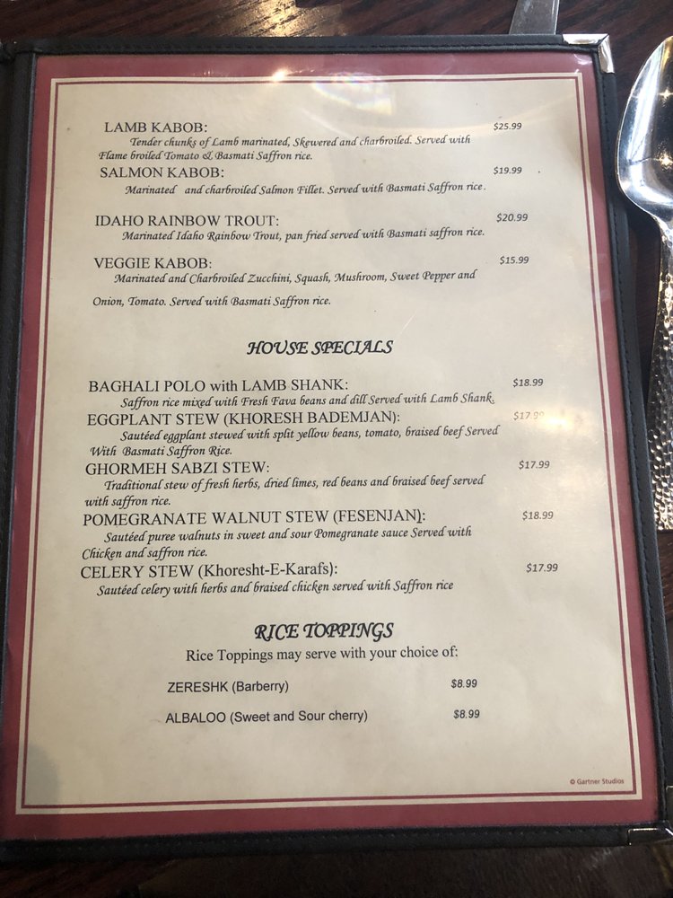 Fresh herbs, lentils, barley prepared in authentic Persian style. Served with pita bread